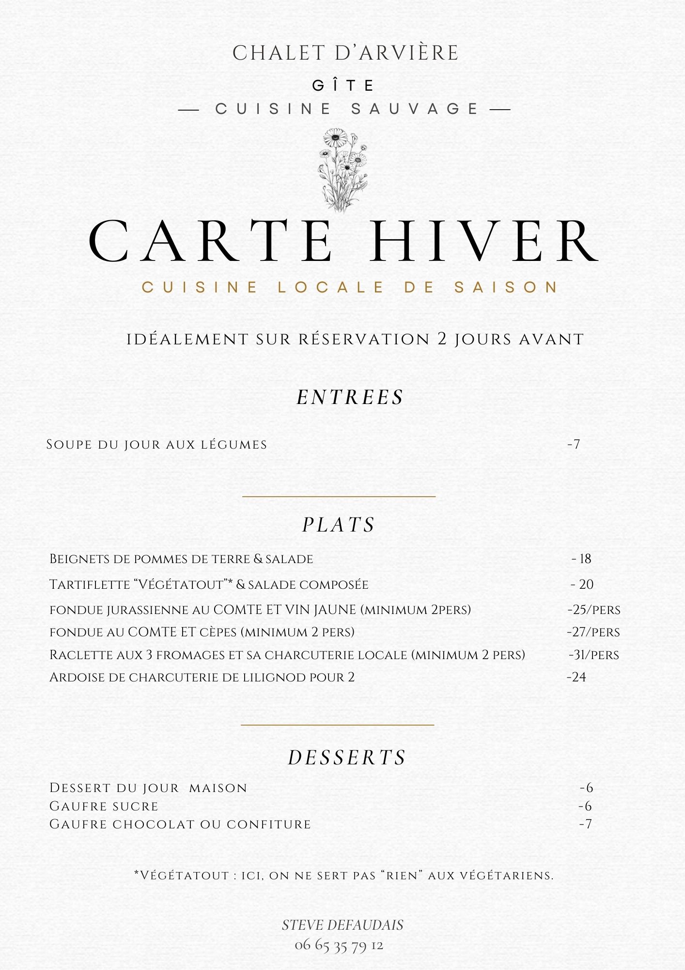 contact@chaletdarviere.comNous serons ravis de co-créer avec vous une expérience culinaire pleinement alignée avec votre recherche d’harmonie et de bien-être.